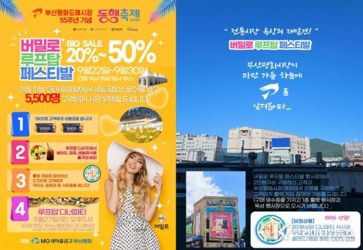 코리아타임뉴스 부산취재본부 | 부산진구는 부산평화시장 번영회 주최로 개점 55주년 기념 ‘버밀로 루프탑 페스티벌’을 9월 22일부터 9월 30일까지 부산평화시장 옥상에서“ 개최한다고 밝혔다.
