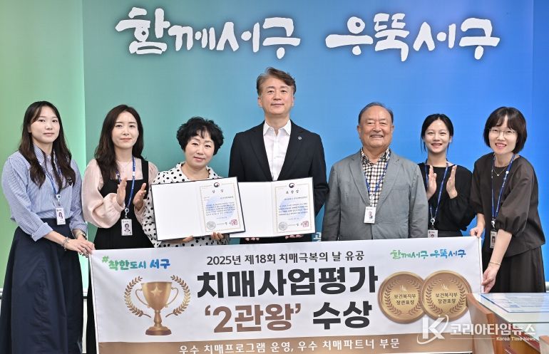 코리아타임뉴스 의료보건팀 | 광주광역시 서구가 치매 정책 우수성을 인정받아 2관왕의 영예를 차지했다. 서구는 ‘2025년 제18회 치매극복의 날 기념식’에서 ▲우수 치매프로그램 운영 ▲우수 치매파트너 운영 등 2개 부문에서 보건복지부 장관 표창을 수상했다.