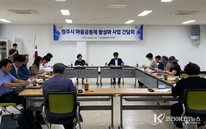 코리아타임뉴스 충북취재본부 | 청주시는 22일 청주시활성화재단 대회의실에서 마을공동체 활성화 사업 계획을 공유하고 향후 추진 방향에 대한 다양한 의견을 듣기 위해 간담회를 열었다.