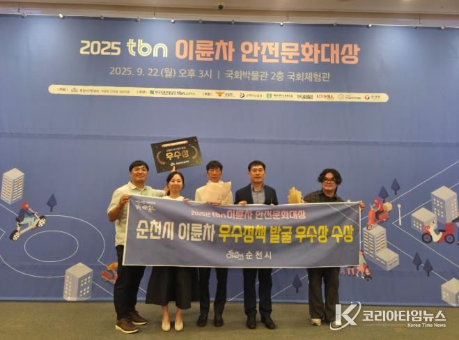 코리아타임뉴스 전남취재본부 | 순천시는 지난 22일 서울 국회박물관에서 열린 '2025 tbn 이륜차 안전문화대상' 시상식에서 이륜차 우수정책 발굴 부문 우수상을 수상했다고 밝혔다.