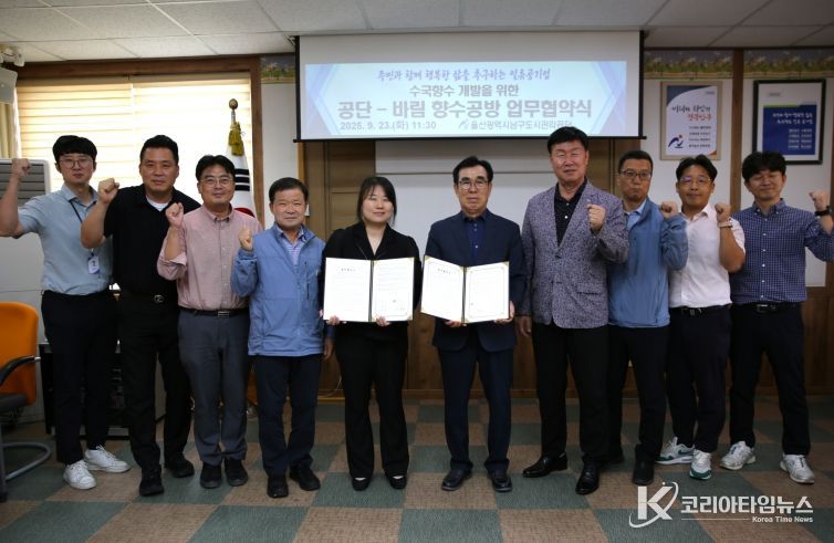 코리아타임뉴스 울산취재본부 | 울산남구도시관리공단(이사장 이춘실)은 23일 공단 회의실에서 ‘2026 장생포 수국페스티벌 수국향수’ 개발을 위한 바림 향수공방과의 업무협약을 체결했다고 밝혔다.