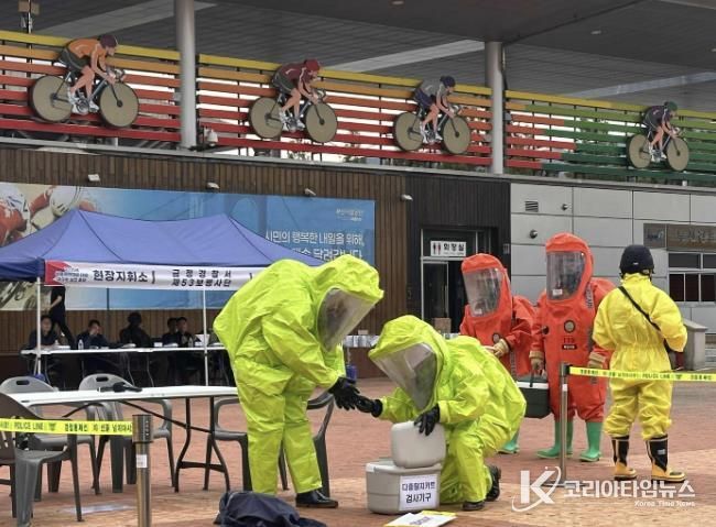 훈련의 세부내용은 '제106회 전국체전' 사이클 경기장인 스포원경륜장에 테러범이 불을 지른 후 행사운영 본부석에 백색가루가 들어있는 파란가방을 버리고 도주하는 상황을 가정해 112 신고접수 및 상황 전파, 초동대응팀 현장 출동, 환경검체 채취, 노출자 이송, 오염지역 제독, 언론브리핑 등의 순서로 이루어졌다.