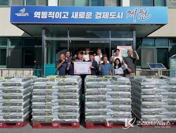 코리아타임뉴스 충북취재본부 | ㈜전국24시콜화물 윤수명 대표(한수면 출신)가 추석을 앞두고 고향의 이웃을 위해 백미 400포를 기탁하며 따뜻한 나눔을 실천했다.