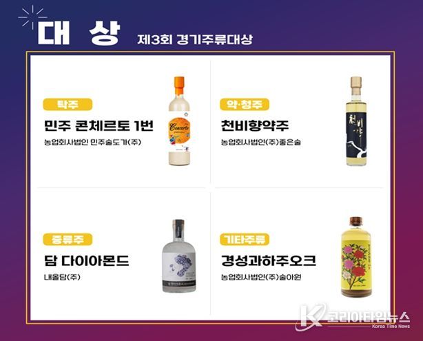 코리아타임뉴스 오영주 기자 | 여주시가 제3회 경기주류대상에서 단일 지자체로는 유일하게 3관왕을 차지하며 전통주 명품 도시로서의 명성을 다시 한 번 입증했다고 25일 밝혔다.