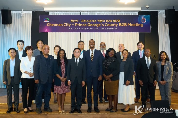 코리아타임뉴스 윤광희 기자 | 천안시는 25일 국제교류도시 미국 메릴랜드주 프린스조지스카운티 경제사절단과 기업 간 거래(B2B) 상담회 및 미국 조달시장 세미나를 개최했다.