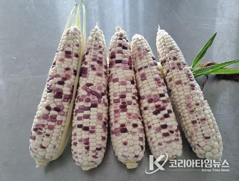 ‘얼룩찰1호’는 흰색과 보라색이 혼합된 얼룩무늬 알갱이를 가진 찰옥수수로 독특한 외관과 시각적 기호성으로 소비자들의 주목을 받고 있다.