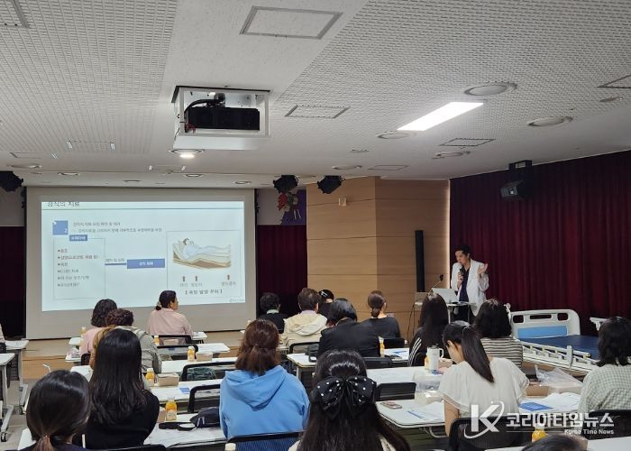 김영은 물리치료사는 첫 강의에서 낙상 예방을 위한 근력·균형운동을 소개하며 요양시설에서 적용할 수 있는 스트레칭과 운동법을 설명했다. 이어 와상환자의 관절가동범위(ROM) 운동법을 간단한 실습으로 진행해 참석자들이 실제 돌봄에 바로 활용할 수 있도록 했다.
