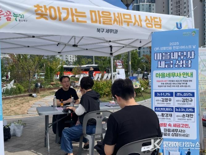코리아타임뉴스 울산취재본부 | 울산 북구는 26일 송정복합문화센터 앞 대리근린공원에서 열린 OK생활민원 현장서비스의 날에서 찾아가는 마을세무사 상담의 날을 운영했다.