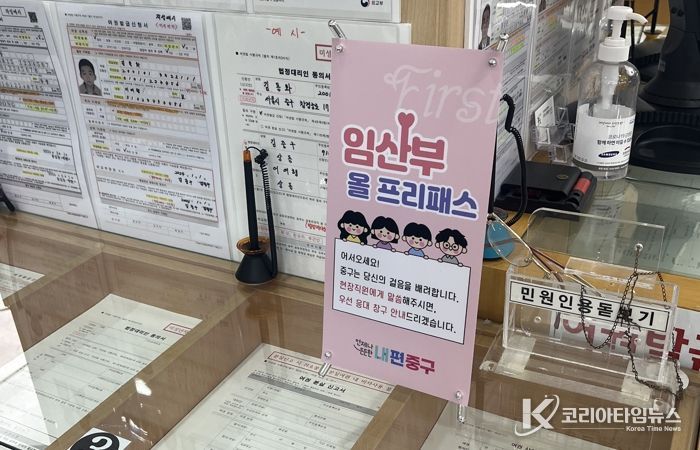 코리아타임뉴스 의료보건팀 | 서울 중구에서 민원 서비스를 받는 임산부는 이제 오랜 시간 기다리지 않아도 된다. 중구가 임산부가 일상에서 배려와 존중을 체감할 수 있도록 '임산부 올 프리패스'를 시행하고 있기 때문이다.