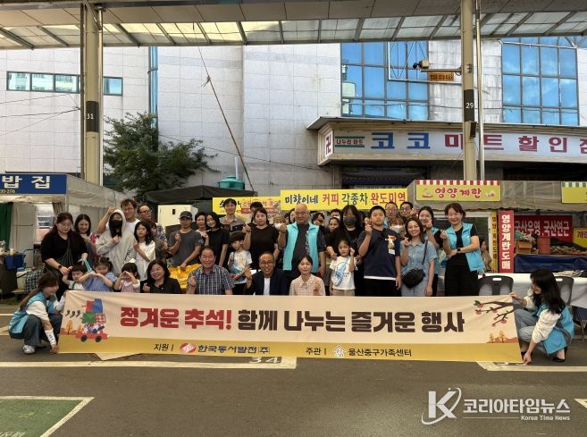 코리아타임뉴스 울산취재본부 | 울산중구가족센터(센터장 서선자)가 추석을 맞아 9월 27일(토) 오후 2시 구역전시장 일원에서 취약계층과 함께하는 전통시장 장보기 행사를 개최했다.