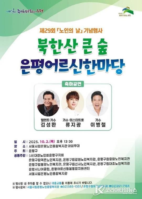 코리아타임뉴스 박찬식 기자 | 서울 은평구는 내달 2일 시립은평노인종합복지관에서 ‘제29회 노인의 날 기념행사’를 개최한다고 밝혔다.