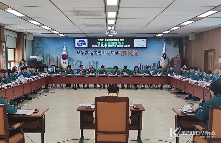 코리아타임뉴스 충북취재본부 | 충북 진천군은 29일 진천군청 대회의실에서 송기섭 진천군수 주재로 ‘중대재해 예방을 위한 긴급 안전점검 회의’를 개최했다.