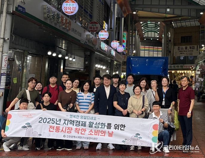 코리아타임뉴스 기동취재팀 | 인천광역시계양구시설관리공단은 추석을 앞둔 지난 24일, 계양산 전통시장에서 지역경제 활성화를 위한 ‘착한소비의 날’ 행사를 열고 지역경제 살리기에 나섰다.