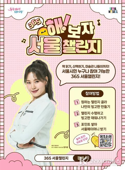 ‘외로움 없는 서울’ 일환으로 진행되는 ‘365 서울 챌린지’는 독서·러닝·관광·시장 방문·공연 관람 등 서울에서 할 수 있는 다양한 활동을 유도, 외로움을 예방하고 활력 회복을 돕는 프로그램이다.