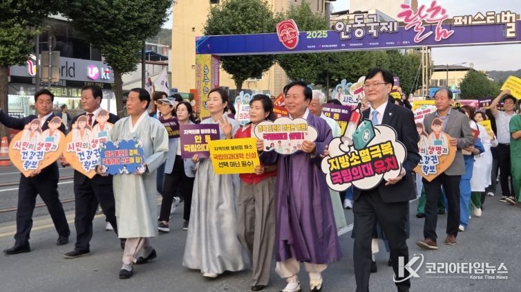 코리아타임뉴스 의료보건팀 | 안동시는 2025년 안동국제탈춤페스티벌 원도심 거리 퍼레이드에서 9월 26일, 27일, 28일 세 차례 경북 국립의대 유치를 위한 퍼포먼스를 진행했다. 오는 10월 4일 한 차례 더 진행해, 총 4회의 거리 퍼포먼스에 참여할 계획이다.