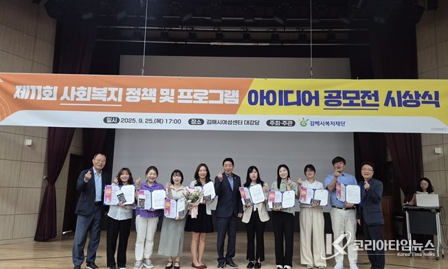 코리아타임뉴스 윤경수 기자 | (재)김해시복지재단은 지난 25일 김해시여성센터 대강당에서 '제11회 사회복지 정책 및 프로그램 아이디어 공모전' 시상식을 개최했다.