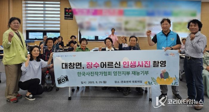 코리아타임뉴스 윤경수 기자 | 대창면은 29일 한국사진작가협회 영천지부에서 어르신 50여 명을 대상으로 무병장수를 기원하는 장수사진 촬영 행사를 열었다고 밝혔다.