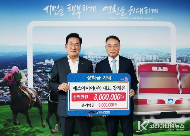 코리아타임뉴스 윤경수 기자 | 영천시는 29일 에스아이이㈜에서 300만원, 영동고등학교 제16회 졸업생 일동이 100만원의 장학금을 영천시장학회에 전달했다고 밝혔다.