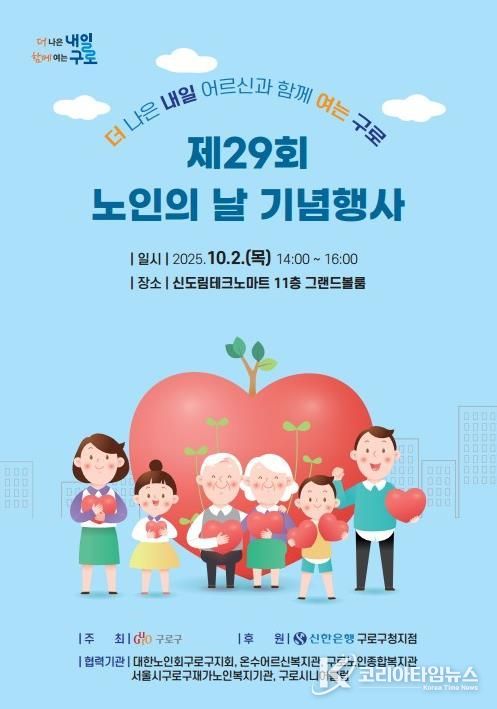 코리아타임뉴스 윤경수 기자 | 구로구가 내달 2일 오후 1시에 신도림테크노마트 11층 그랜드볼룸에서 제29회 노인의 날 기념행사를 개최한다.