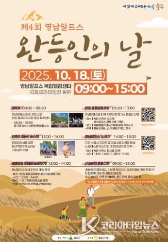 코리아타임뉴스 울산취재본부 | 울산 울주군이 10월 18일 영남알프스 복합웰컴센터에서 ‘제4회 영남알프스 완등인의 날’ 행사를 개최한다고 30일 밝혔다.
