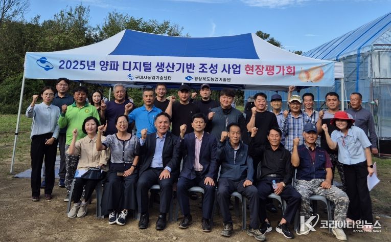 코리아타임뉴스 윤경수 기자 | 구미시는 9월 29일 선산읍 생곡리 시범농가에서 ‘2025년 양파 디지털 생산기반 조성’ 사업 평가회를 열고, 기계 정식에 적합한 양파 육묘 모델을 선보였다. 이날 행사에는 양파 재배 농업인들이 참석해 새 기술 적용 현장을 직접 확인했다.