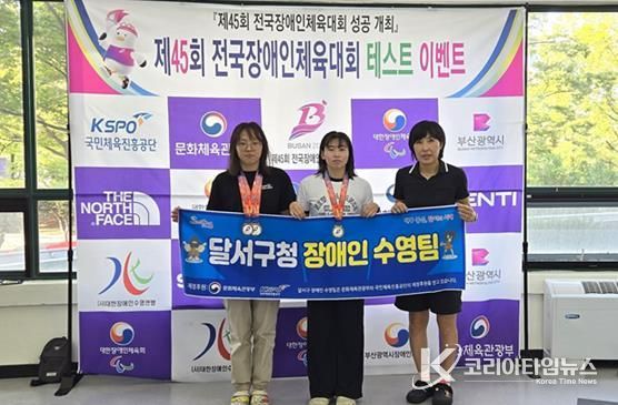 코리아타임뉴스 윤경수 기자 | 대구 달서구청 장애인 수영팀이 '제45회 전국장애인체육대회 사전 프레대회'에서 금메달 2개와 은메달 1개를 획득하며 우수한 성적을 거뒀다.