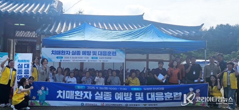 코리아타임뉴스 의료보건팀 | 강진군보건소가 지난 26일 도암면 만년마을에서 치매환자 실종 대응 모의 훈련을 실시했다. 이번 훈련은 치매환자 실종 사고 발생 시 신속하고 안전하게 가정으로 복귀할 수 있도록 지역사회 대응체계를 구축하기 위해 강진군치매안심센터, 강진경찰서, 강진소방서, 치매안심마을 주민 등 60여 명이 참여하며 실전처럼 실시했다.
