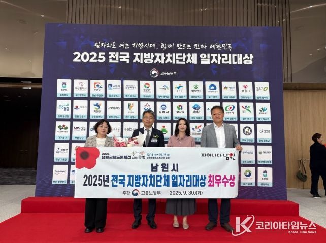 코리아타임뉴스 전북취재본부 | 남원시는 9월 30일 고용노동부 주관으로 청주 오스코에서 열린 ‘2025년 전국 지방자치단체 일자리대상’에서 최우수상을 수상했다고 밝혔다.
