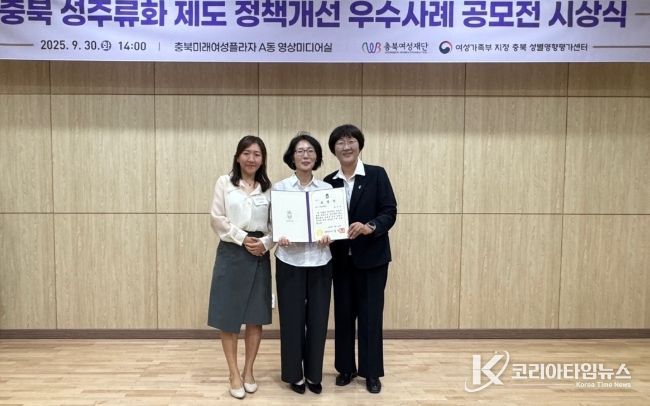 코리아타임뉴스 충북취재본부 | 청주시는 30일 충북미래여성플라자에서 개최된 ‘충북 성주류화 제도 정책개선 우수사례 시상식’에서 2025년 성인지 정책 유공으로 도지사 표창을 수상했다.