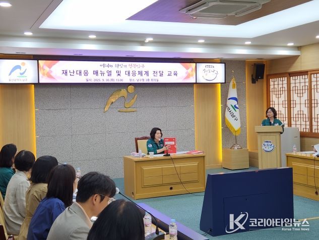 코리아타임뉴스 울산취재본부 | 울산 남구는 30일 ‘남구 현장 맞춤형 재난대응 매뉴얼 및 대응체계 교육'을 실시했다.