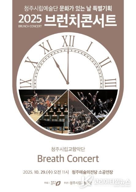 코리아타임뉴스 충북취재본부 | 청주시립교향악단은 오는 29일 오전 11시 청주예술의전당 소공연장에서 ‘브런치콘서트–Breath Concert’를 공연한다.