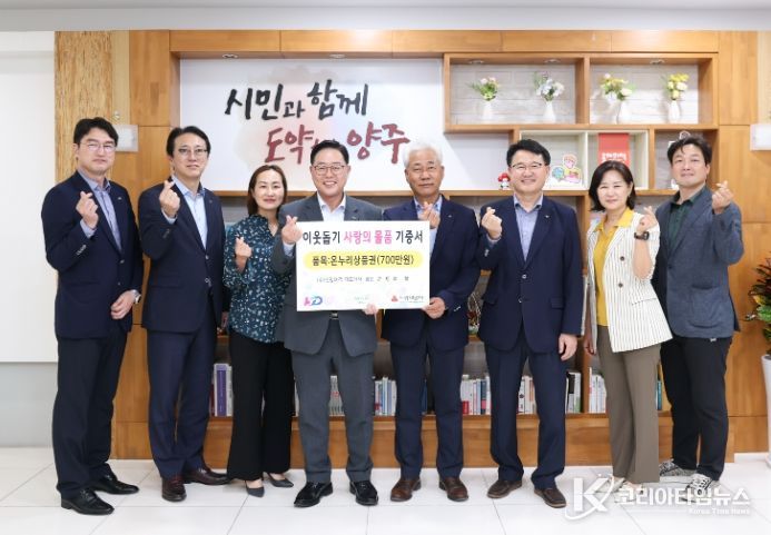 코리아타임뉴스 윤광희 기자 | 양주시가 지난 30일 ㈜진명여객(대표 허상준)에서 온누리상품권(1만원) 700매를 기탁받았다.
