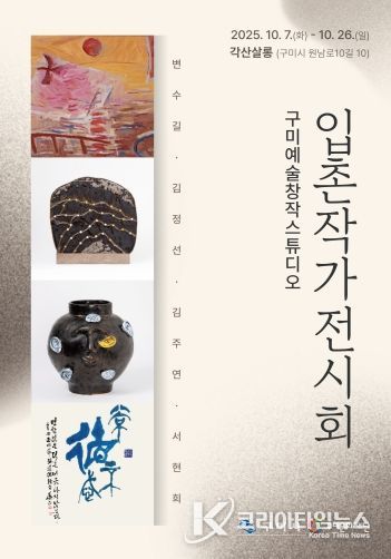 코리아타임뉴스 윤경수 기자 | (재)구미문화재단은 오는 10월 7일부터 26일까지 20일 간 각산살롱에서 구미예술창작스튜디오 입촌작가 전시회를 개최한다.