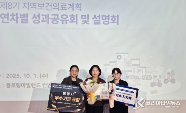 코리아타임뉴스 의료보건팀 | 통영시가 1일 보건복지부가 주관한 2025년도 지역보건의료계획 성과공유회에서 3차년도 시행계획 평가결과 ‘우수 지자체’로 선정돼 보건복지부 장관 표창을 수상했다.