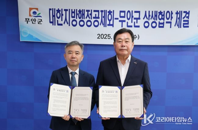 코리아타임뉴스 전남취재본부 | 전남 무안군과 대한지방행정공제회(이사장 김장회)가 1일 양 기관의 지속적인 발전과 상호 지원을 위한 상생협약을 체결했다.