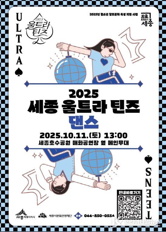 코리아타임뉴스 한장선 객원기자 | 세종특별자치시가 오는 11일 오후 1시 세종호수공원에서 세종한글축제 메인무대를 춤으로 가득 채우는 ‘세종 울트라 틴즈 댄스대회’를 개최한다.