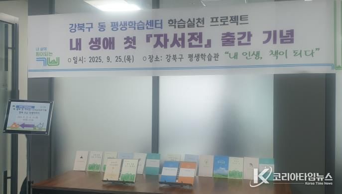 코리아타임뉴스 사회팀 | 강북구는 지난 9월 25일 동 평생학습센터에서 ‘내 생애 첫 자서전 – ChatGPT와 함께 쓰는 인생 이야기’ 프로그램을 마무리하고 출간 기념식을 개최했다고 밝혔다.