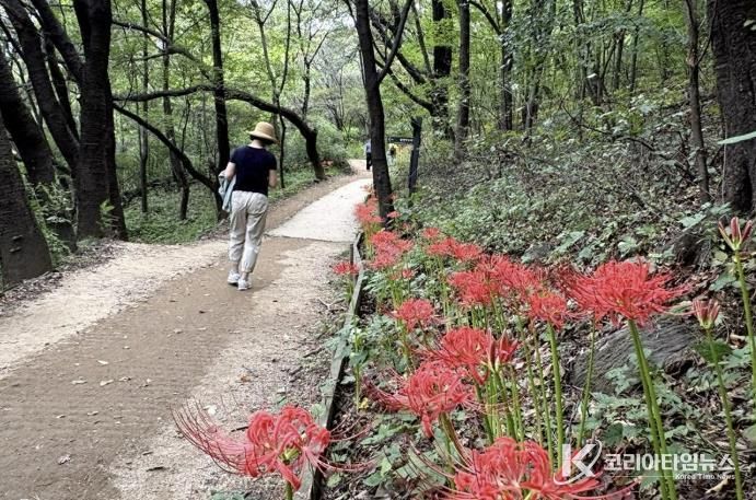 코리아타임뉴스 윤경수 기자 | 서대문구는 관내 안산(鞍山) 자락길에 가을의 전령사인 꽃무릇이 활짝 피어 등산객들의 눈길을 사로잡고 있다고 2일 밝혔다.