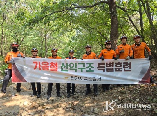 코리아타임뉴스 김태훈 기자 | 천안서북소방서는 가을철 등산객 증가로 인한 산악사고에 대비하기 위해 지난 9월 30일부터 10월 2일까지 3일간 천안시 서북구 성거산 일대에서 산악사고 대응을 위한 특별구조훈련을 실시했다고 전했다.