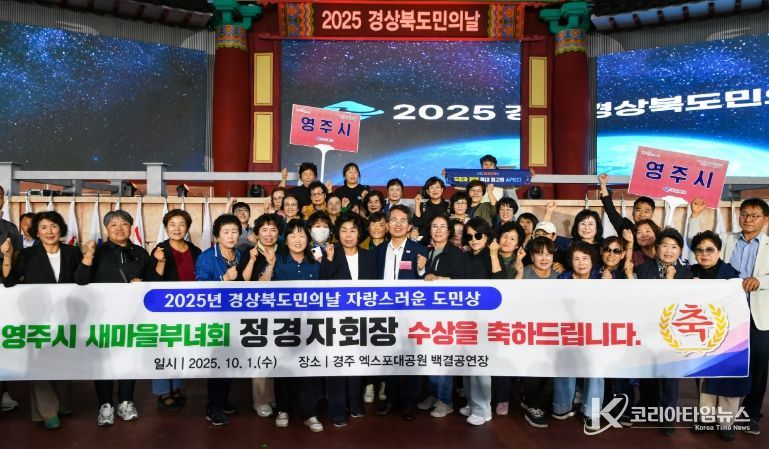 코리아타임뉴스 윤경수 기자 | 영주시는 10월 1일 경주 엑스포대공원 백결공연장에서 열린 ‘2025년 도민의 날 기념식’에서 정경자 영주시 새마을부녀회장이 ‘영주시 자랑스러운 도민상’을 수상했다고 밝혔다.
