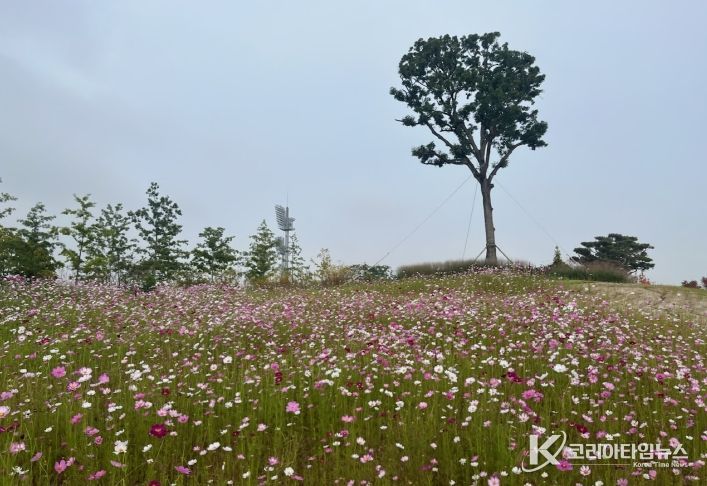 코리아타임뉴스 박찬식 기자 | 충주시가 도심 속에 대규모 코스모스 단지를 조성해 시민들에게 가을의 정취를 선사하고 있다.