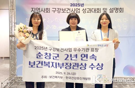 코리아타임뉴스 의료보건팀 | 순창군이 전국 지방자치단체를 대상으로 열린 ‘2025년 구강보건사업 성과대회’에서 우수기관으로 선정돼 보건복지부 장관 표창을 수상했다.