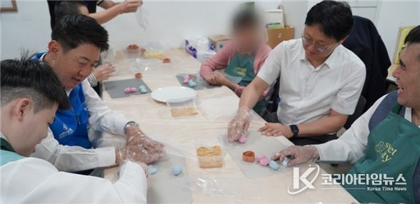 거주 장애인 10명과 같이 미리 준비한 반죽에다 깨, 설탕을 섞은 소를 넣어 원하는 모양으로 만들었다.