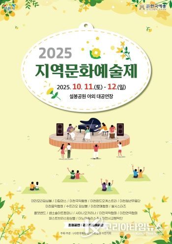 코리아타임뉴스 문화팀 | (사)한국예총 이천지회가 주최·주관하는 지역 예술인들의 축제인 ‘2025년 지역문화예술제’가 오는 10월 11일부터 12일까지 이틀간 오후 2시부터 오후 6시 30분까지 설봉공원 야외대공연장에서 개최된다.