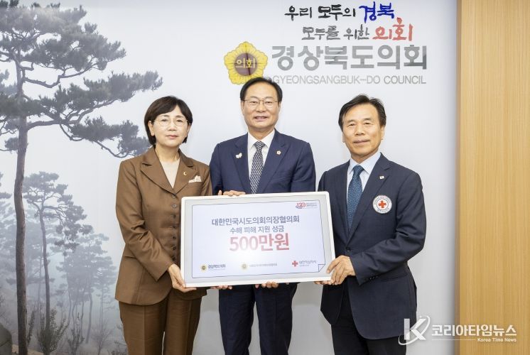 코리아타임뉴스 윤경수 기자 | 경상북도의회는 10월 2일 도의회 의장실에서 재난구호금 5백만원을 대한적십자사 경북지사에 전달했다.