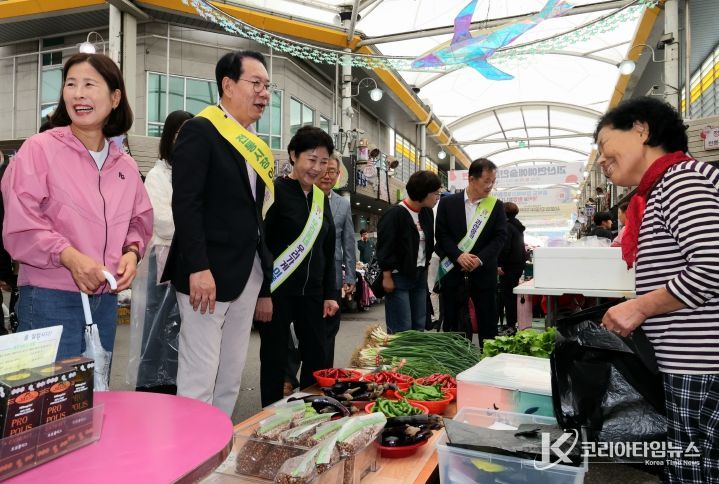 3일, 송 군수는 괴산전통시장 곳곳을 돌며 제철 농산물과 수산물 등을 직접 구입하고, 상인들과 일일이 악수하며 현장의 생생한 목소리를 청취했다.