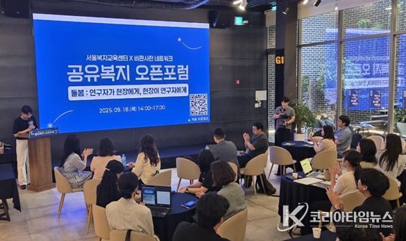 코리아타임뉴스 윤경수 기자 | 서울시복지재단 내 서울복지교육센터는 지난 9월 18일 사회복지 현장종사자와 사회복지 전공 대학원 청년 연구자가 만나는'2025년 공유복지 오픈포럼'을 개최했다고 밝혔다.