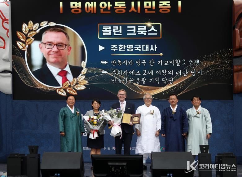 코리아타임뉴스 윤경수 기자 | 안동시는 지난 10월 3일 열린 제23회 ‘안동의 날’ 기념식에서 콜린 제임스 크룩스(Colin James Crooks) 주한영국대사에게 명예안동시민증을 수여했다고 밝혔다.