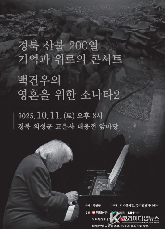 코리아타임뉴스 윤경수 기자 | 의성군은 경북 산불 발생 200일을 맞아 세계적인 피아니스트 백건우의 위로 연주회가 오는 10월 11일 토요일 오후 3시, 의성군 천년고찰 고운사에서 열린다고 밝혔다.