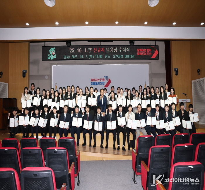 코리아타임뉴스 윤광희 기자 | 오산시는 지난 10월 2일 오산시청 대회의실에서 2025년 신규 임용 공직자 52명을 대상으로 임용장 수여식을 개최했다고 밝혔다.